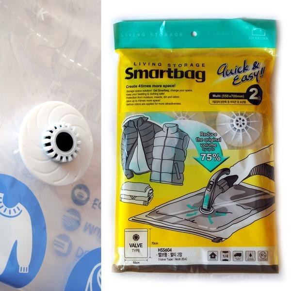 Úložný vak z nylonu je určen k uschování různého textilu a oděvů zejména pak vhodný pro cestování. Úložný vak má speciální vakuový zip a silný povlak pro dlouhodobou životnost. Vysavačem z naplněného vaku odsajete vzduch a ušetříte tak při skladování až 8, Úložný vak z nylonu je určen k uschování různého textilu a oděvů zejména pak vhodný pro cestování. Úložný vak má speciální vakuový zip a silný povlak pro dlouhodobou životnost. Vysavačem z naplněného vaku odsajete vzduch a ušetříte tak při skladování až 80% místa. Velmi propracovaný zpětný ventil znemožňuje únik vzduchu směrem ven. Úložný vak je snadno omyvatelný. Vak je odolný vůči vodě, prachu a molům. Vhodné k užití také venku. Oblečení se v tomto vaku nezničí a nezmuchlá. Rozměry - 55 x 70 cm. Balení obsahuje 2 ks vaků.. Cena za 1 kus/balení.