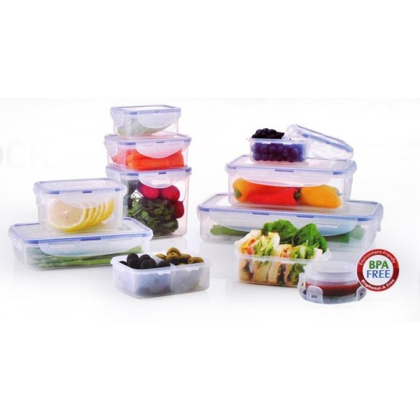Sada 11 dóz lock s patentními víky. Dózy lock jsou bezpečné a funkční nádoby vyrobené z kvalitního plastu, který je trvanlivý a odolává vysokým teplotám. Tyto dózy jsou 100% vzduchotěsné a tím zajišťují dlouhodobou čerstvost uchovávaných potravin. Čtyři p, Sada 11 dóz lock s patentními víky. Dózy lock jsou bezpečné a funkční nádoby vyrobené z kvalitního plastu, který je trvanlivý a odolává vysokým teplotám. Tyto dózy jsou 100% vzduchotěsné a tím zajišťují dlouhodobou čerstvost uchovávaných potravin. Čtyři pohyblivé "klipy" zajišťující víko jsou odolné proti opotřebení. Dózy lock lze použít v chladničce, mikrovlnce nebo pro zmražování a lze je mýt v myčce na nádobí. Dózy lock prošly přísnými hygienickými zkouškami a odpovídají nejpřísnějším předpisům. Rozměry jednotlivých dóz: 1 dóza á 100 ml/8,9x4,3 cm2 dózy á 180 ml/10,8x8,8x4,8 cm 2 dózy á 350 ml/13,5x10,2x5,2 cm,1 dóza á 350 ml/13,5x10,2x5,2 cm se dvěma samostatnými přihrádkami1 dóza á 470 ml/13,5x10,2x6,8 cm 1 dóza á 850 ml/13,5x10,2x11,8 cm1 dóza á 800 mxl/20,5x13,4x5,2 cm 1 dóza á 1000 ml/20,5x13,4x6,9 cm 1 dóza á 1000 ml/27,8x11,5x6 cm.. Cena za 1 kus/balení.