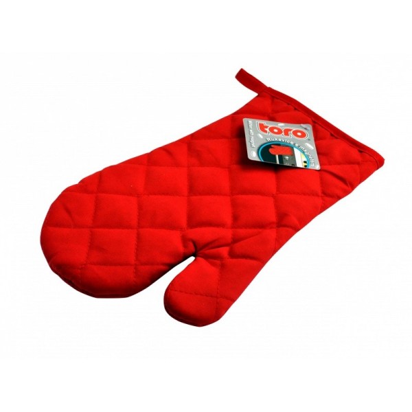 Kuchyňská chňapka - tvar rukavice je vhodná pro chycení a přenášení horkých nádob, pečících plechů z rozpálené trouby nebo na zvedání rozpálené pokličky. Barva červená. Materiál - bavlna. Rozměry - 27 x 17 cm.. Cena za 1 kus/balení.
