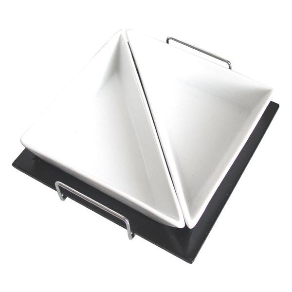 Velmi oblíbená sada dvou trojúhelníkových misek na dřevěném podnose je velmi praktická při servírování různých pokrmů. Nerezová ouška zajišťují lehkou manipulaci. Misky jsou vhodné do myčky na nádobí, podnos je snadno omyvatelný, stačí přetřít vlhkým ha, Velmi oblíbená sada dvou trojúhelníkových misek na dřevěném podnose je velmi praktická při servírování různých pokrmů. Nerezová ouška zajišťují lehkou manipulaci. Misky jsou vhodné do myčky na nádobí, podnos je snadno omyvatelný, stačí přetřít vlhkým hadříkem. Objem každé misky je 200 ml. Rozměry podnosu -19, 4 x 19, 1 cm.. Cena za 1 kus/balení.